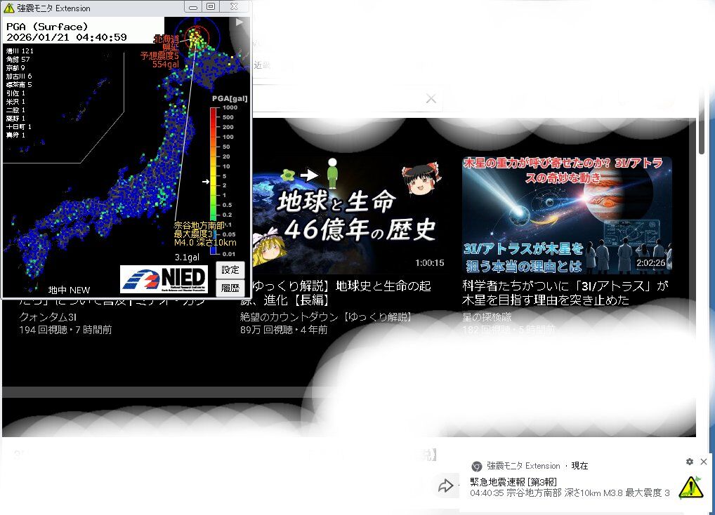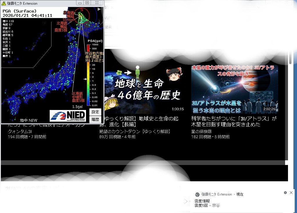 1/6島根県東部震度5強5弱4 緊速3連発