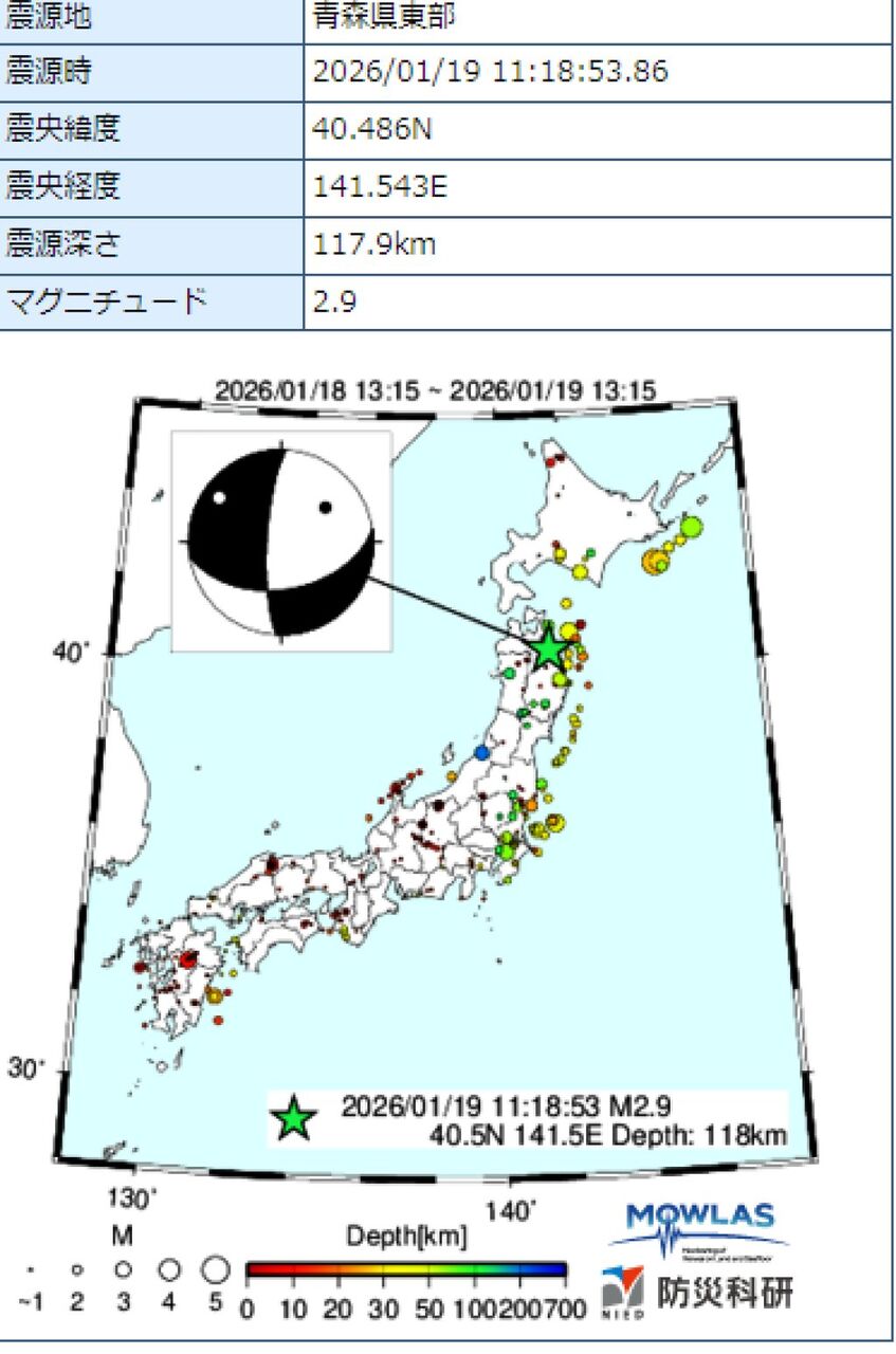 2025年12月12日 11時44分ごろ青森県東方沖M6.9震度4緊速