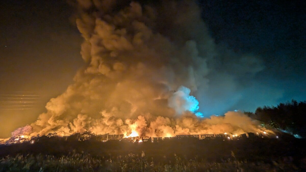 炎こそ見えませんが煙が勢い良く立ち上がっています。