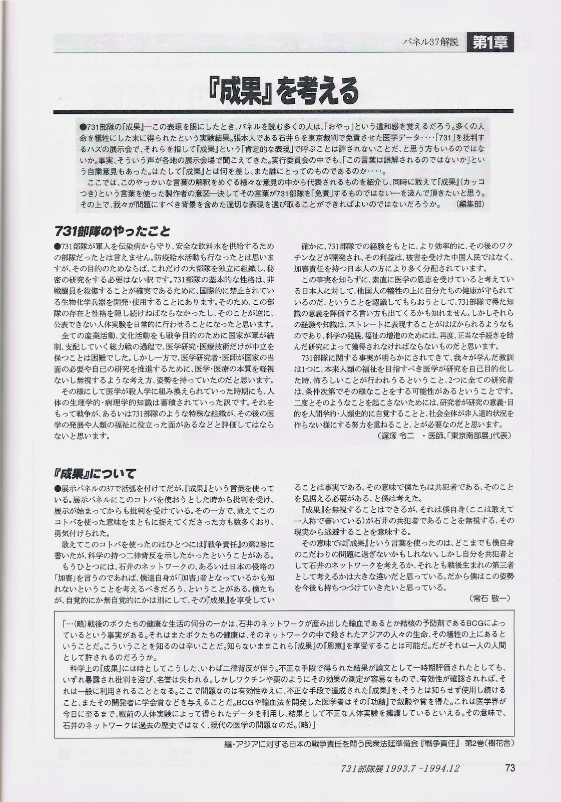 パネル集1993年「731部隊展」
