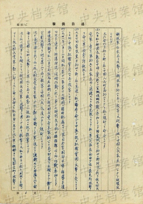 中央檔案館が日本戦犯、鈴木啓久の中国侵略罪行自供抜粋を公開