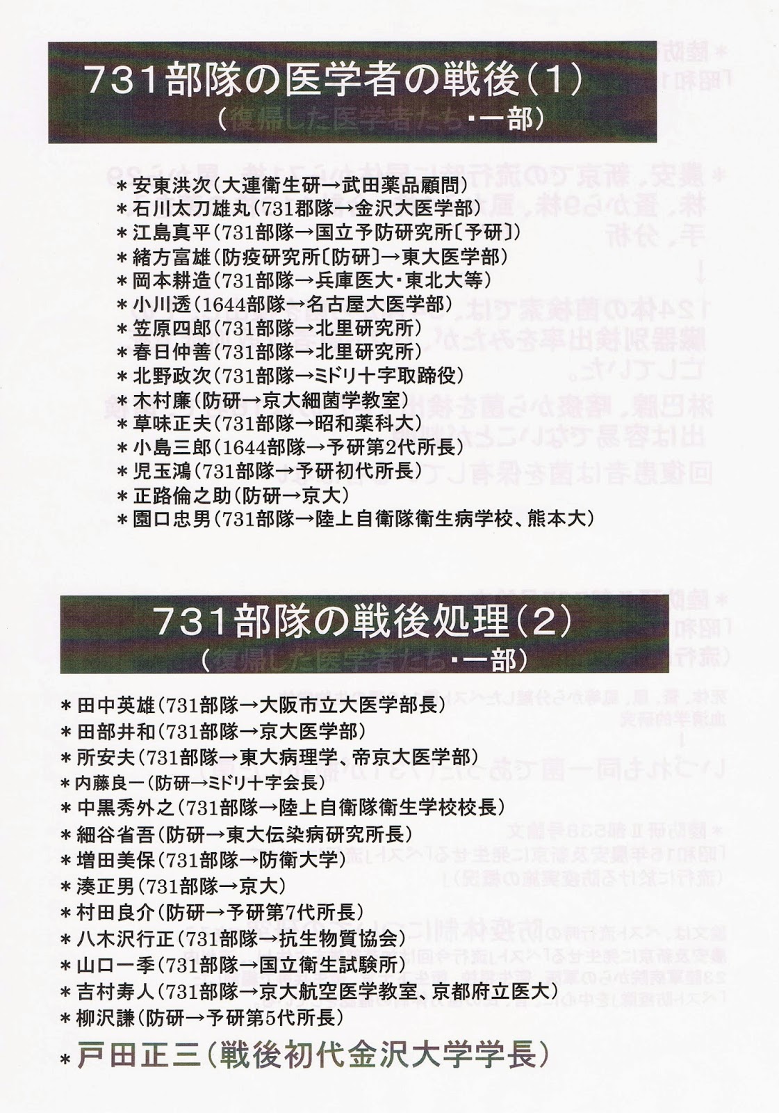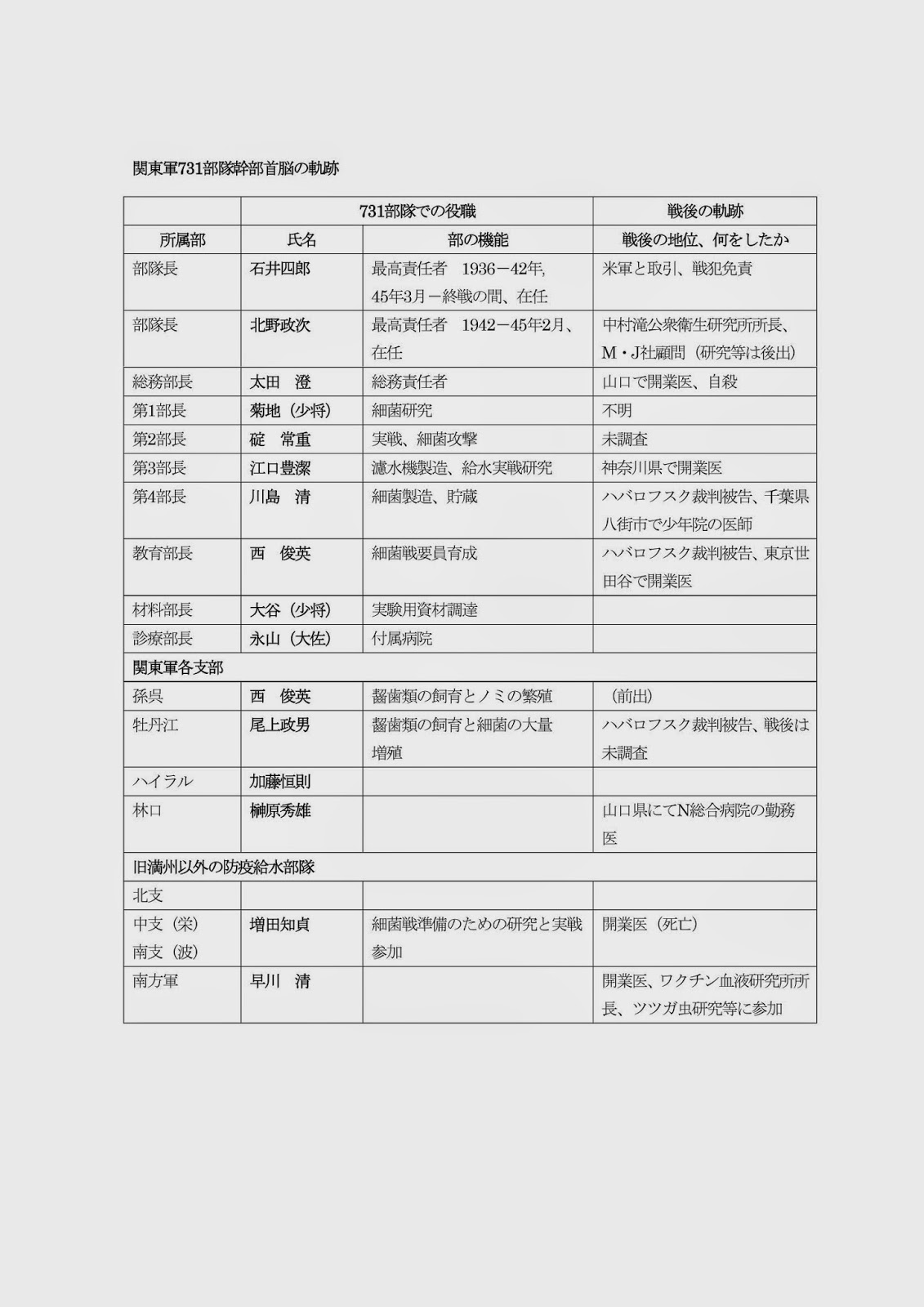 731部隊に関与した医師・医学関係者 作成者:小俣和一郎