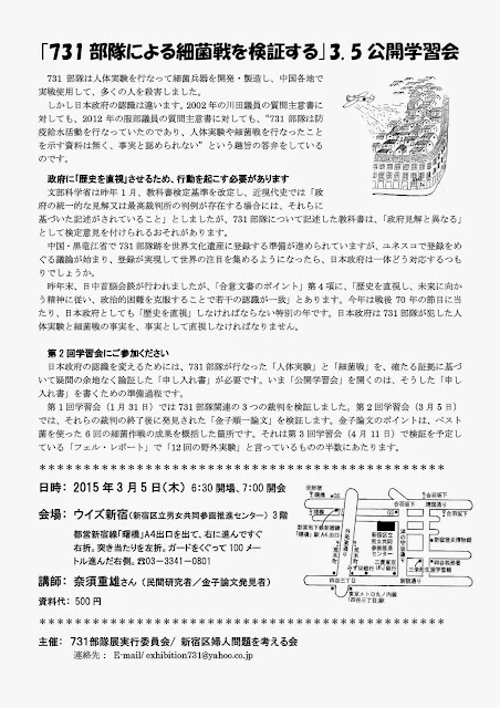 ●「731部隊による細菌戦を検証する」3. 5公開学習会