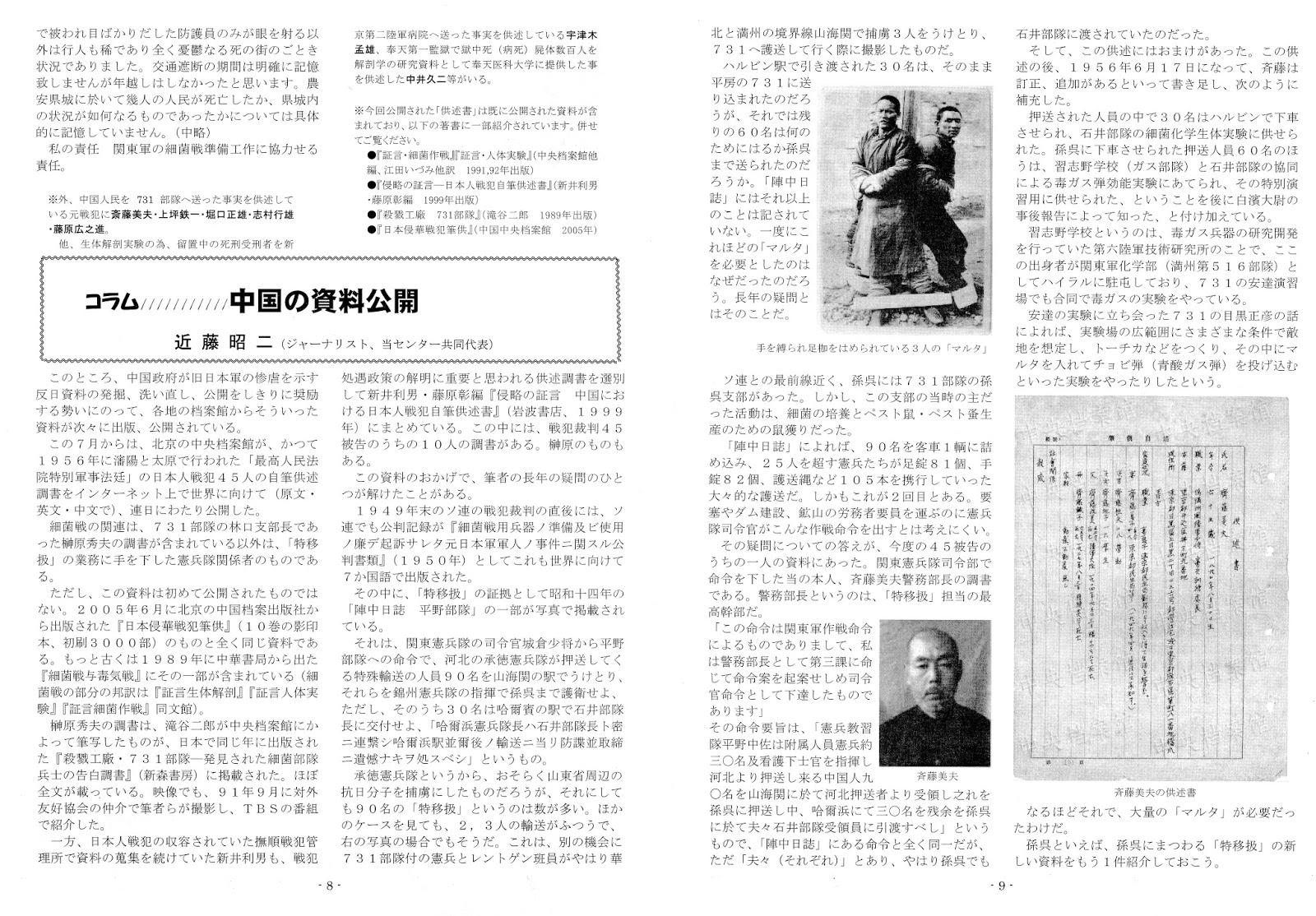 ・「旧日本軍による細菌戦に関する中国民衆の戦争記憶」