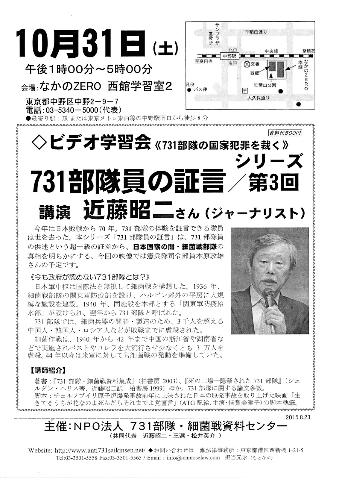 「731部隊による細菌戦を検証する」3.5公開学習会№1