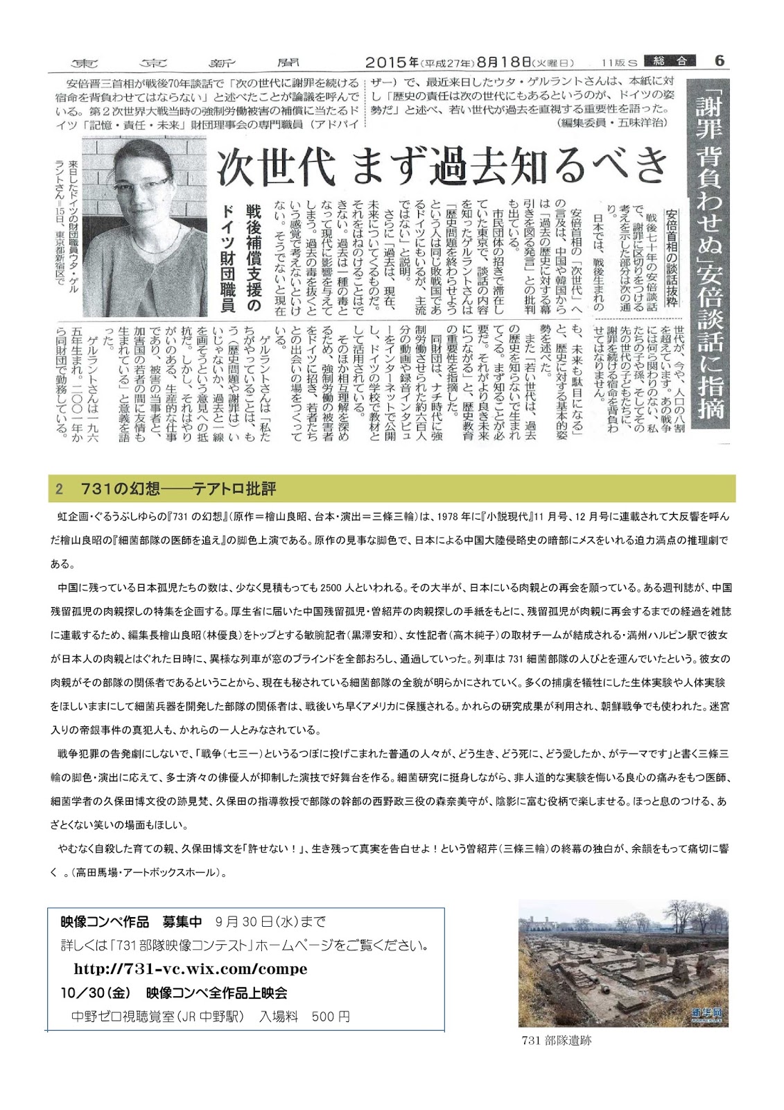 ●松村高夫さん(慶応大学名誉教授):「731部隊を検証する」4.11