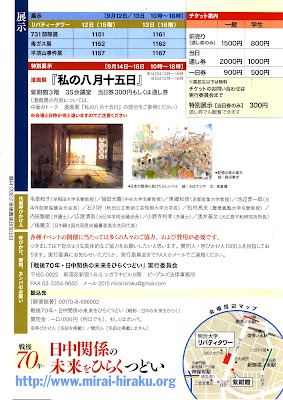 731部隊展は、12日(土)は15階の1151号室で、13日(日)は16階の1161号室で行います。
