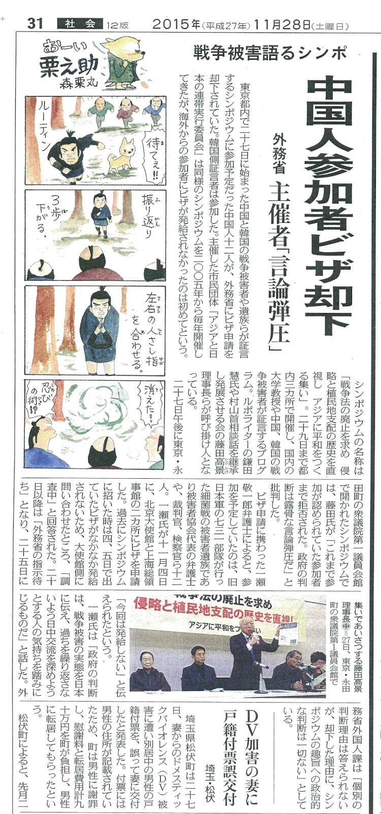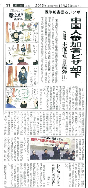 安倍政権の不当弾圧!!歴史を直視せよ!!中国人参加者、ビザ発給されず 歴史問題シンポ