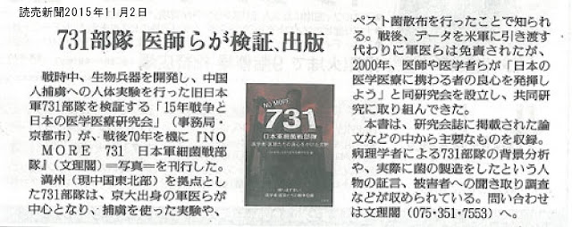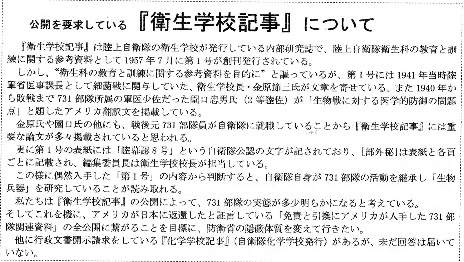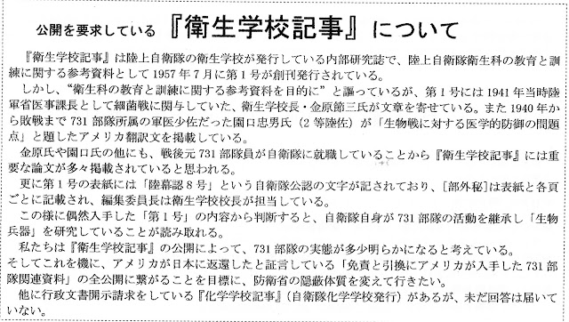 興味深い一文・・・やはり自衛隊は、731の反省をまったくせず、その思想を継承していた。