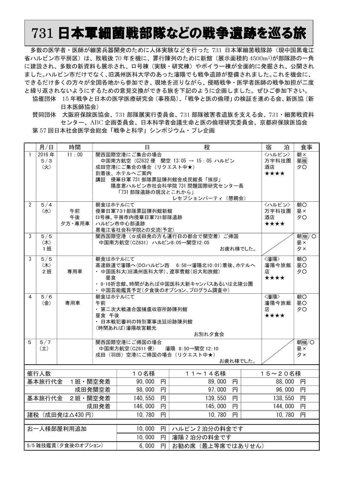 731日本軍細菌戦部隊などの戦争遺跡を巡る旅【5月3日(火)~5月7日(土)】