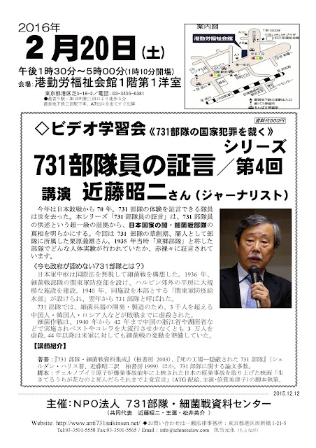 ●松村高夫さん(慶応大学名誉教授):「731部隊を検証する」4.11