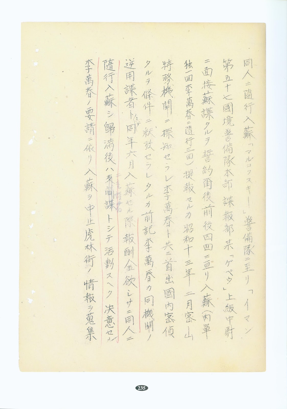 それで、毎日マルタのお迎えですよね。汽車で来るのはほとんど新京から来ましたね。マルタが。それが、来るというと、汽車がダーッとハルビン駅に入ってきて、一番こっち側の外れに憲兵室があるんですよね。駅の一番後ろの方に。それで一番後ろに乗ってくるわけですよね。みんな数珠つなぎにされてね。腰ひもつけて。その時分には、足錠はないの。手錠と腰ひも。それで私服の憲兵がついて、それで今のマルタと称する者が、普通民間の格好しているから、わからないわけ。・・・それで多い時には20人くらいもいるしね、大体一番多いのはやっぱり12、3人程度ですね。