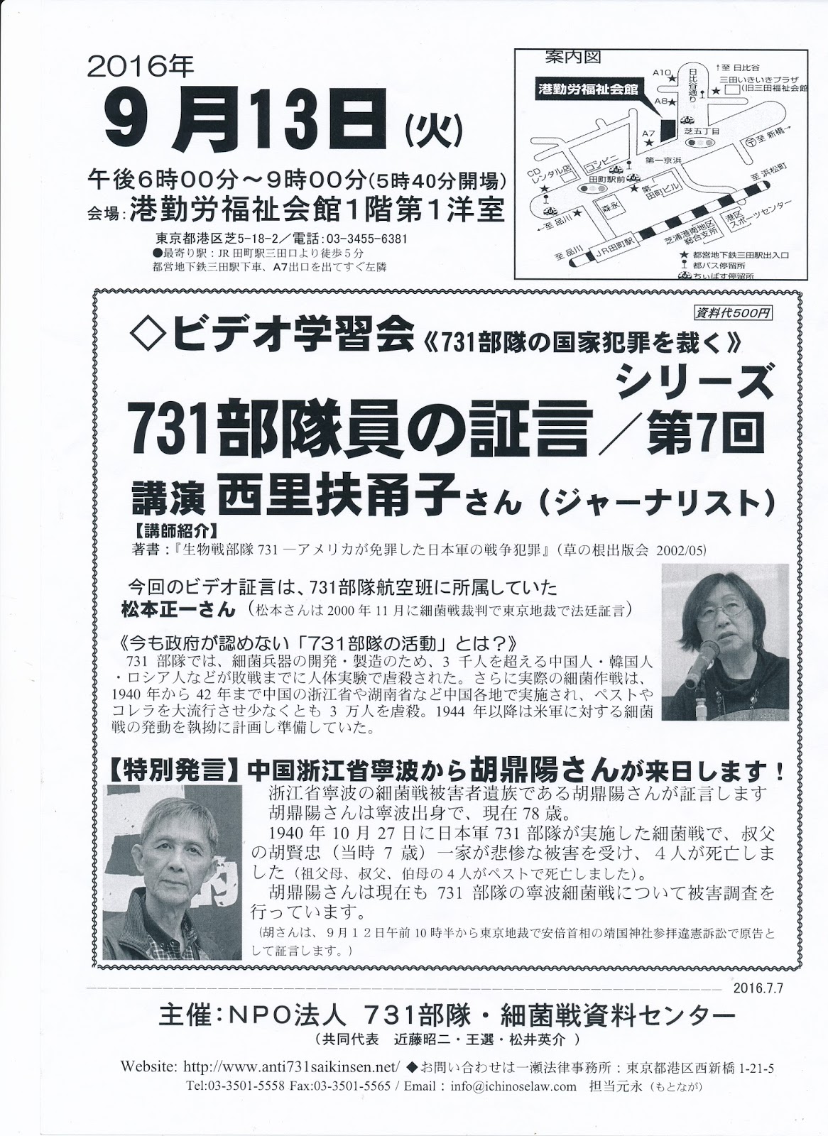 731部隊の設置許可、人体実験、毒ガス戦・細菌戦実施の許可した昭和天皇とそれに協力せざるを得なかった日本医学界の責任、戦後、その人体実験、毒ガス戦・細菌戦を全く裁判にかけなかったマッカーサーとアメリカ政府の責任、1990年代から2000年代にかけて行われた裁判において、事実を認めながら、それを放置している司法の責任、全く無視している政治の責任、731に対する国民の認識は?