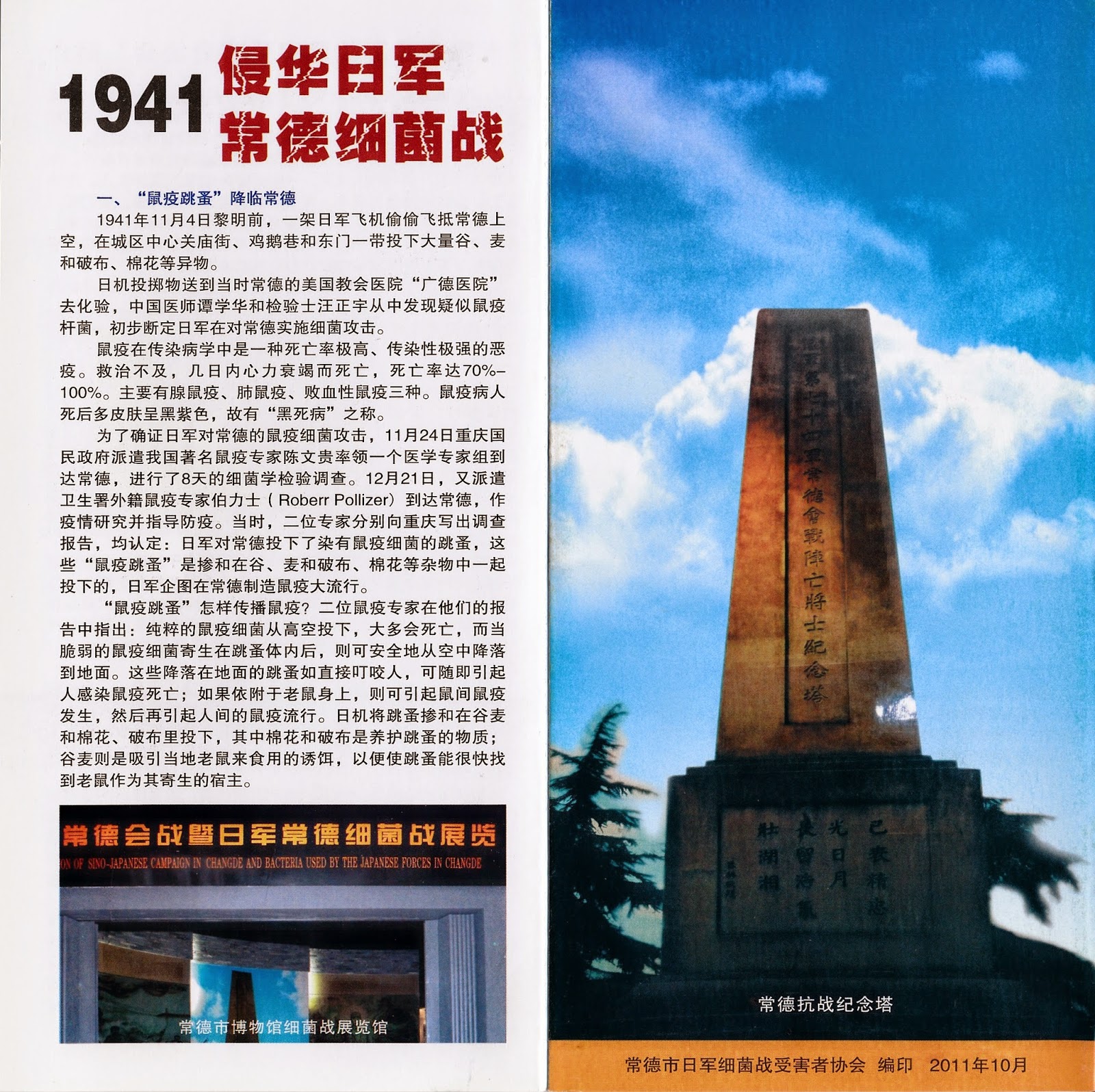 ●1941年に日本軍は大量のペスト菌で汚染されたノミ、米、綿を空中投下したため、常徳権県庁所在地及び郊外農村でペスト病の大規模な流行を引き起こした。