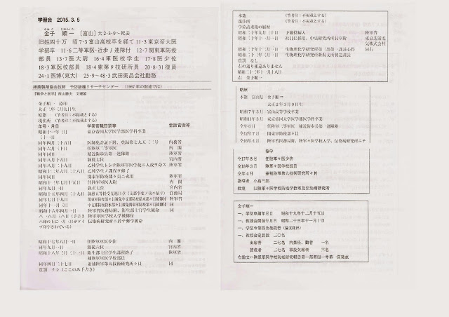 ※金原節三は戦時中、1941年当時陸軍省医事課長として731部隊細菌戦に深く関与していた軍医大佐であり、戦後自衛隊衛生学校の校長にもなった。