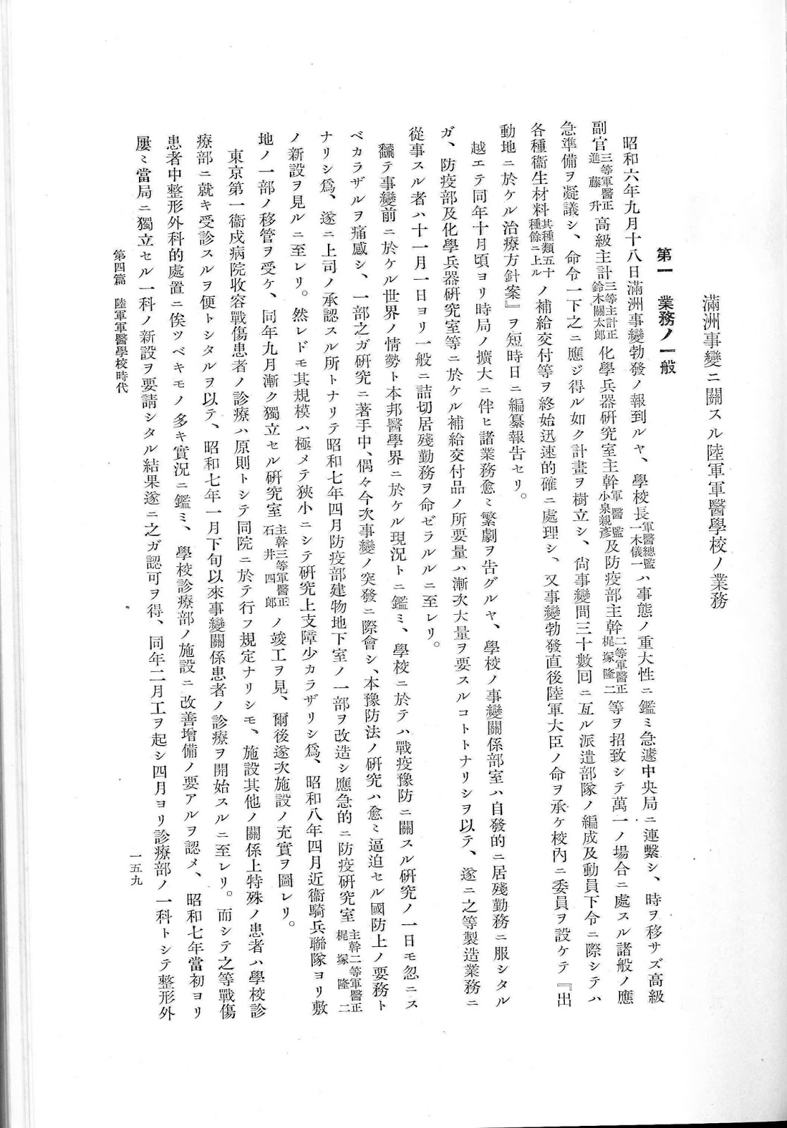 私は1945年1月第1課長細谷少佐に命じて、細菌戦準備のために、以前から培養していたチフス菌、A型及びB型パラチフス菌、赤痢菌の保存培養の中から、各菌株の動物に対する毒力検査を実施させ、強毒菌株を選定し、