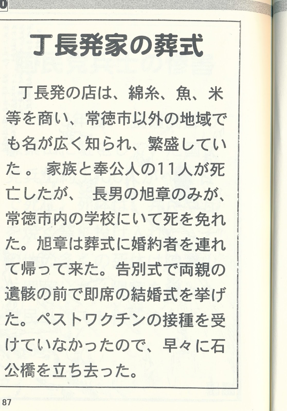 ●1941年に日本軍は大量のペスト菌で汚染されたノミ、米、綿を空中投下したため、常徳権県庁所在地及び郊外農村でペスト病の大規模な流行を引き起こした。