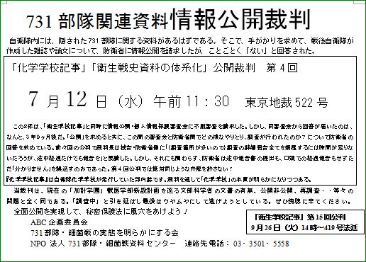 7月12日(水)11:30~『化学学校記事』情報公開裁判 東京地裁522号室