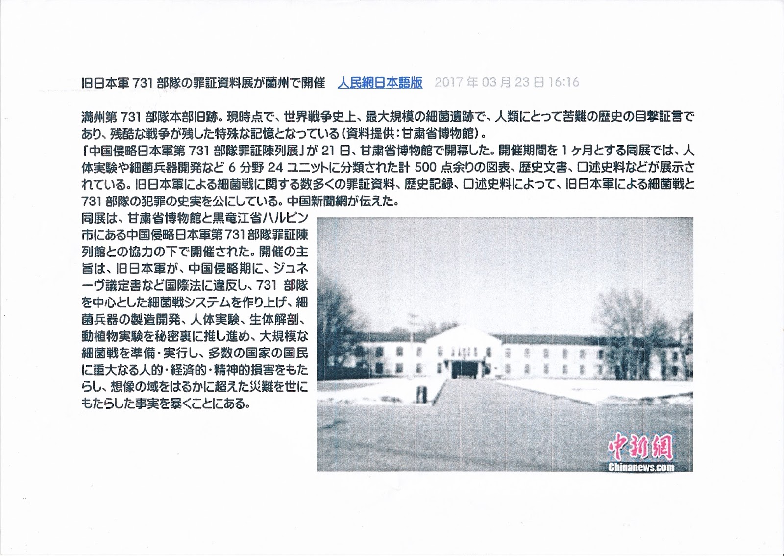 731遺跡は日本軍国主義が細菌戦を行ったことの証しであり、