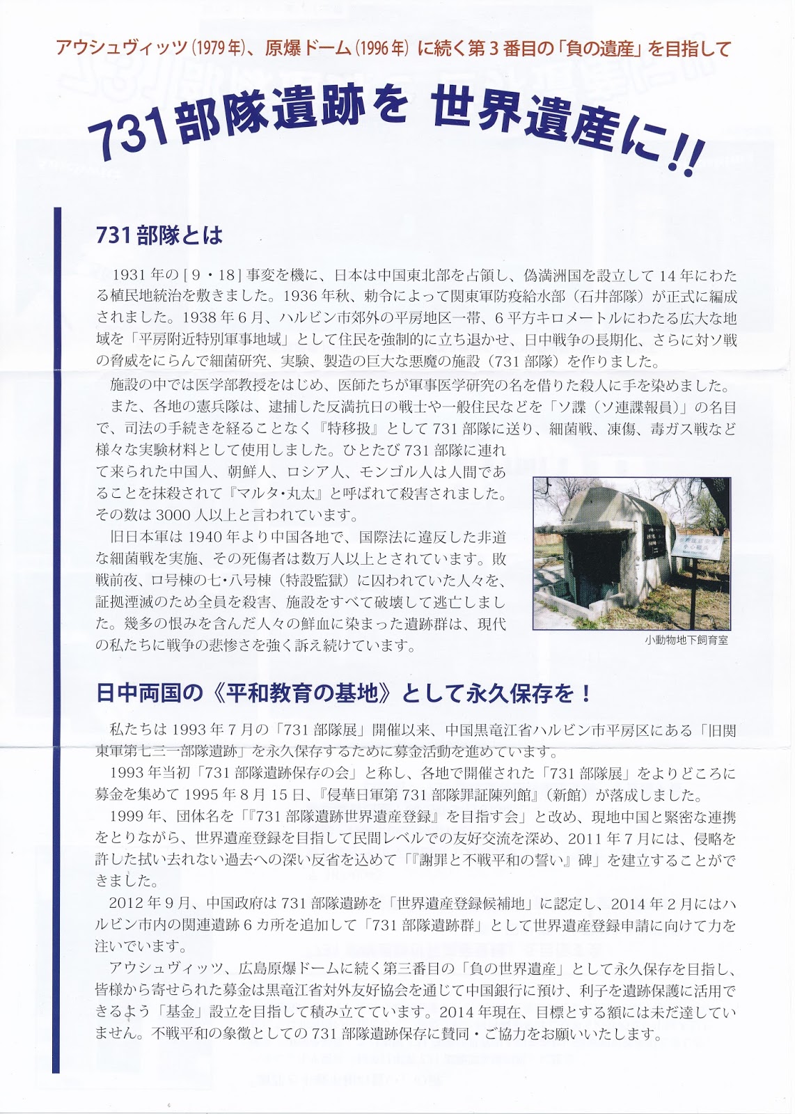 「ハバロフスク裁判は強制による虚偽である」または、「731部隊の事実はなかった」等の批判に対して、私たちがわかりうる範囲で、事実や資料を提示することに徹している。