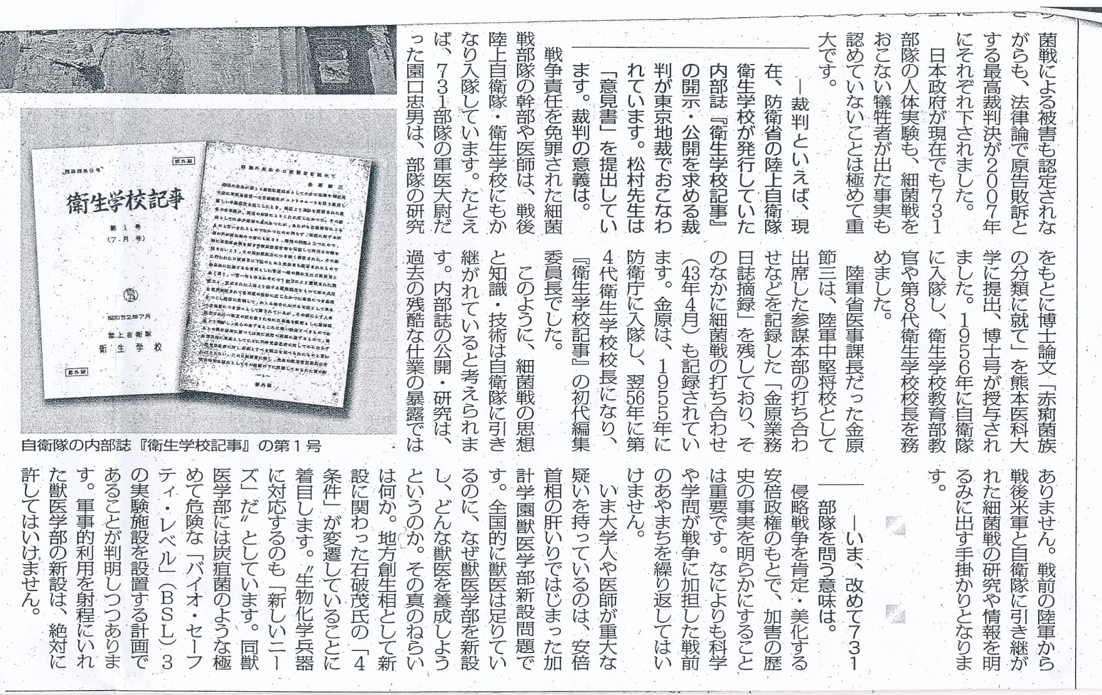 15年戦争中の「医学犯罪」に目を閉ざさず、繰り返さないために