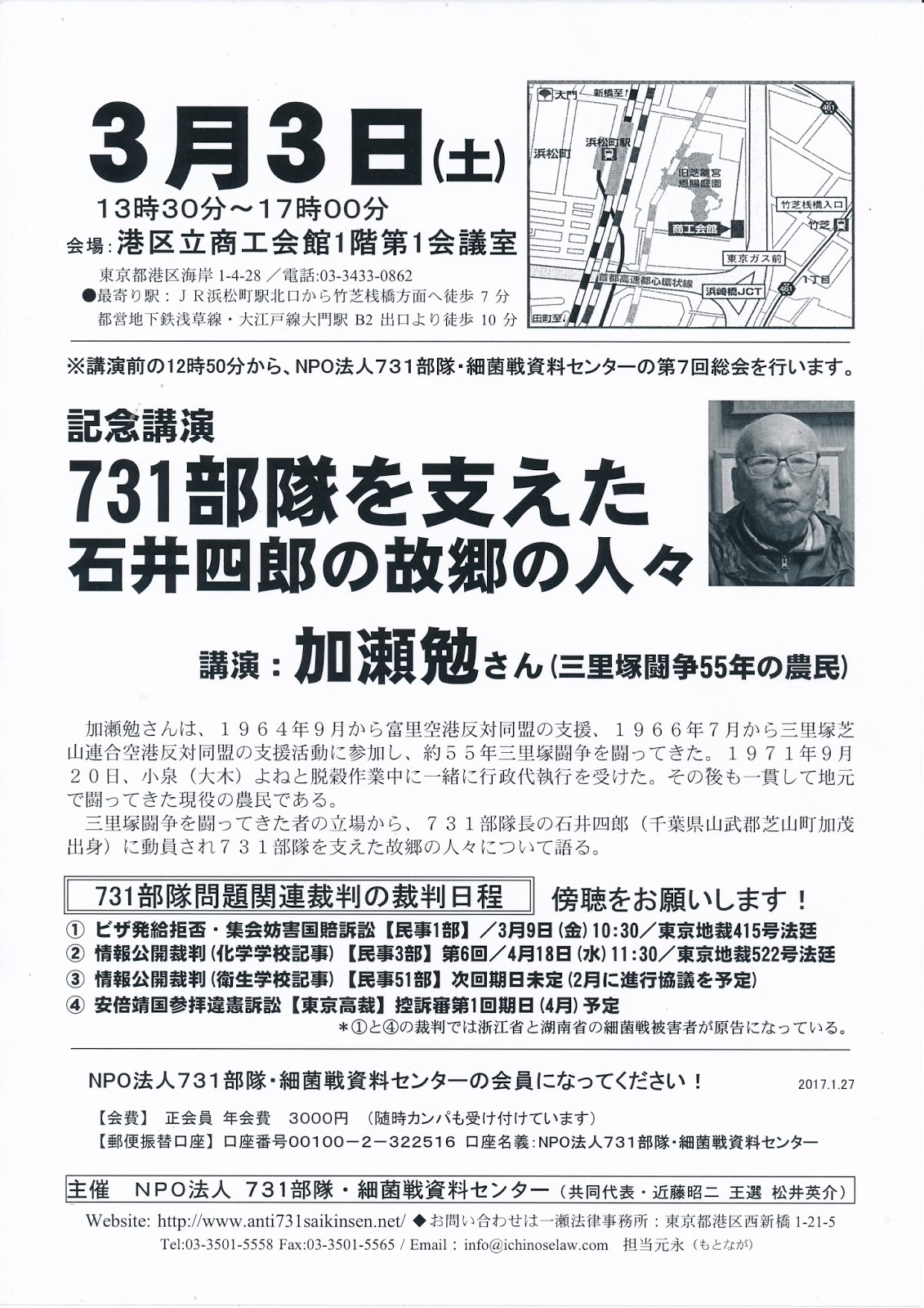 ・次回情報公開裁判(「化学学校記事」)第6回 2018年4月18日(水)11:30~東京地裁522号法廷