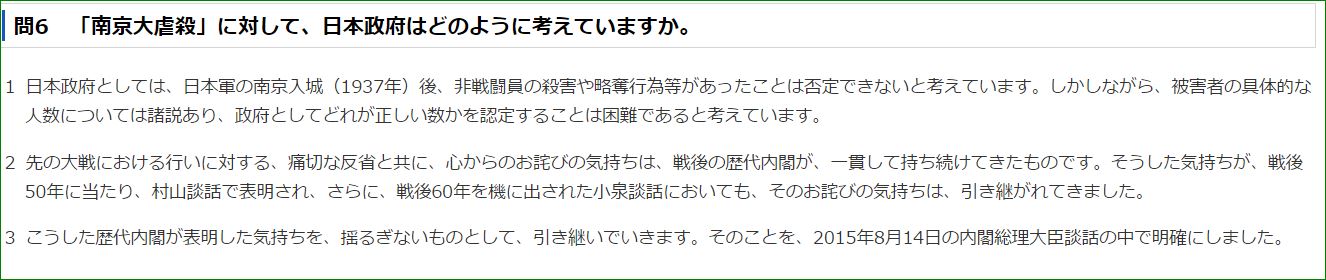 問6 「南京大虐殺」に対して、日本政府はどのように考えていますか。