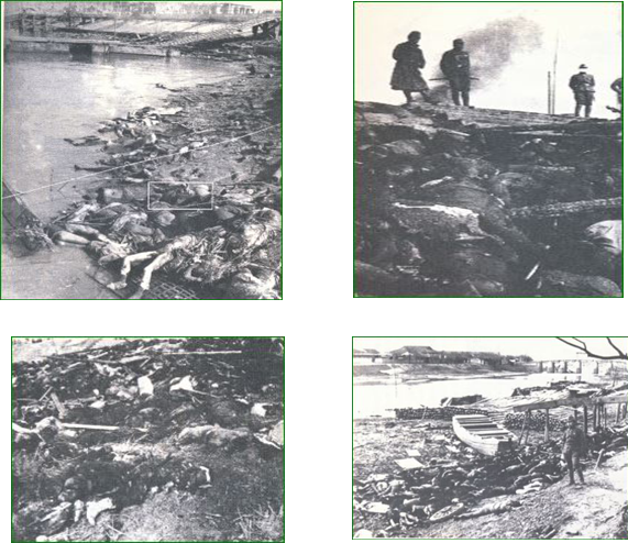 村瀬守保の写真で、南京事件に関するものは6枚ある。撮影場所は揚子江岸と、城壁外の壕あるいは支流の土手である。写真28~31は、そのうちの4枚である。村瀬は写真を撮影した時の様子を次のように述べている。