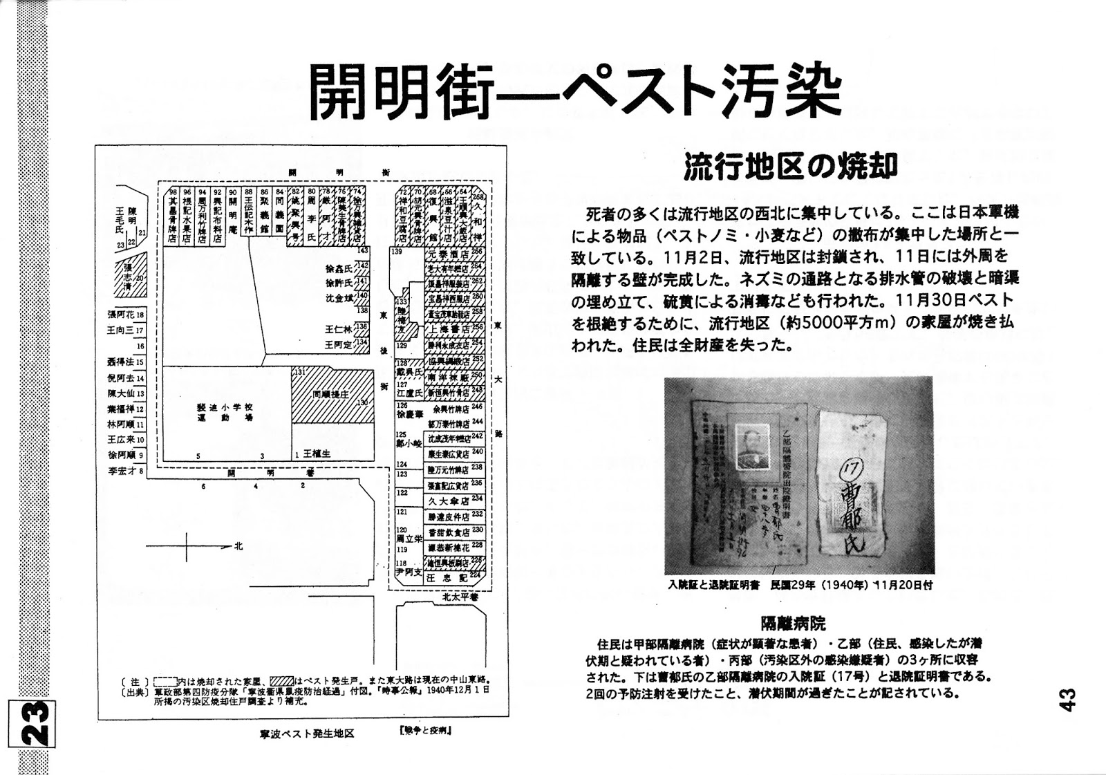 ●1941年に日本軍は大量のペスト菌で汚染されたノミ、米、綿を空中投下したため、常徳権県庁所在地及び郊外農村でペスト病の大規模な流行を引き起こした。