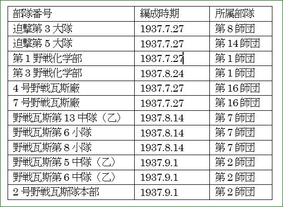 華北地区に派遣された化学部隊の全容は次の通り