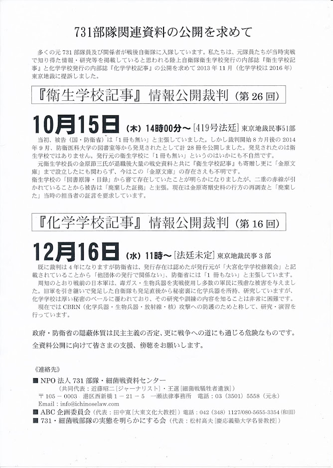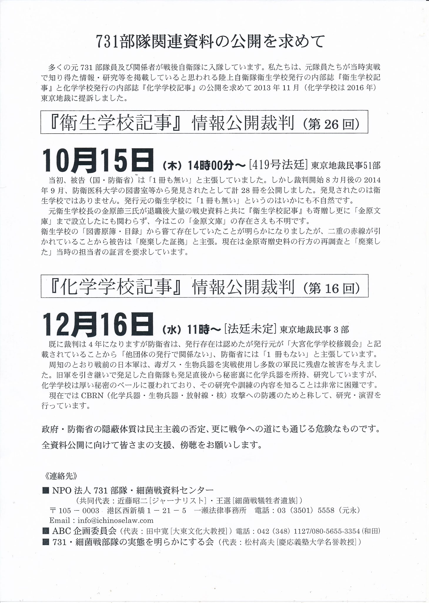 ●情報公開裁判「化学学校記事」「衛生学校記事」