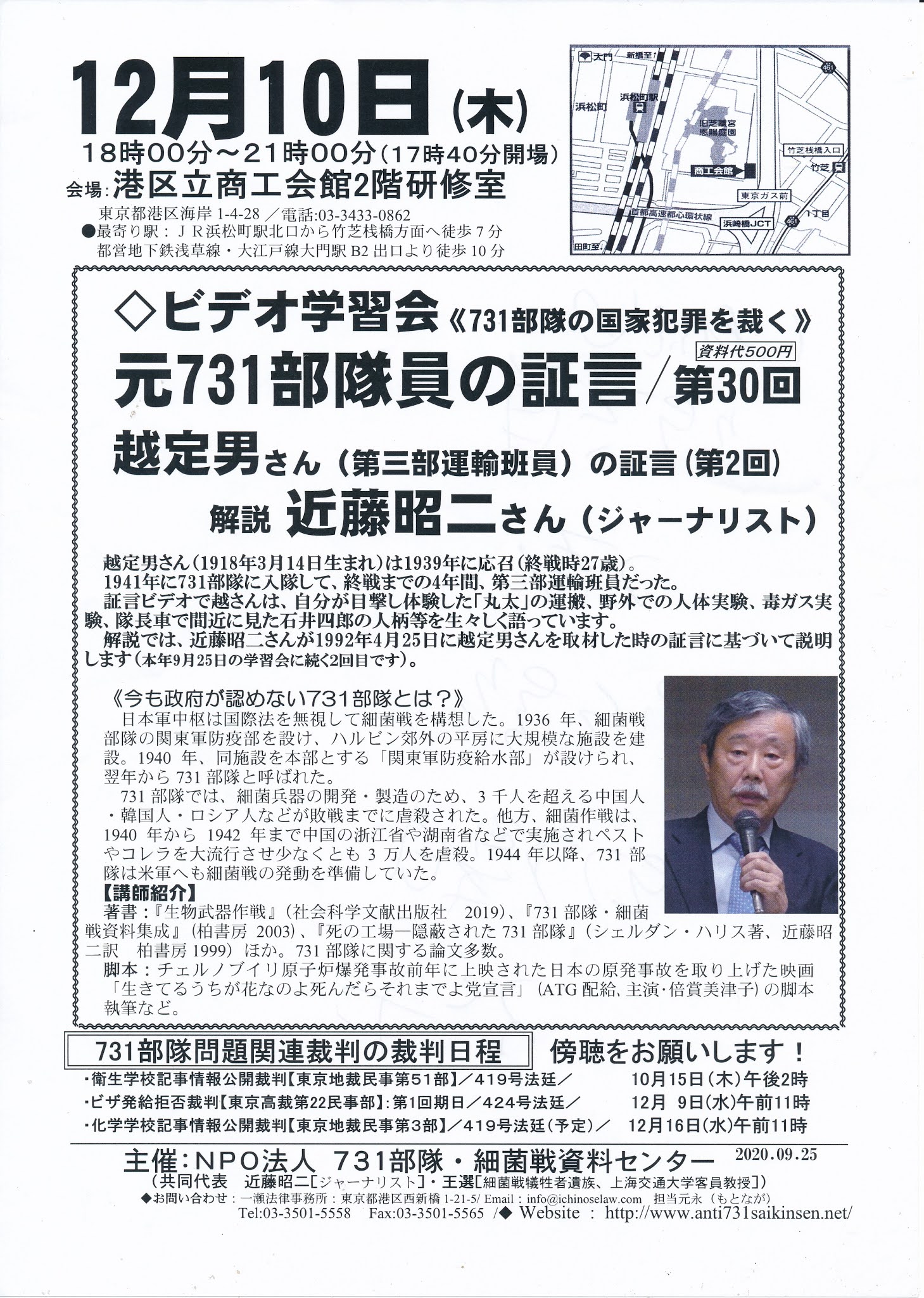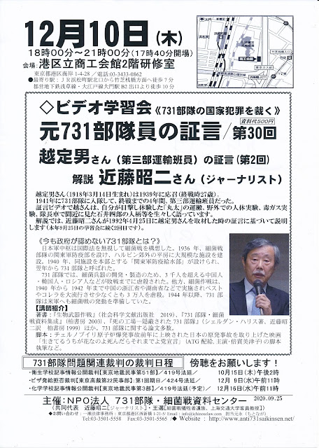 2020「731部隊 戦前・戦後の医学ー医学と人権を考える」3