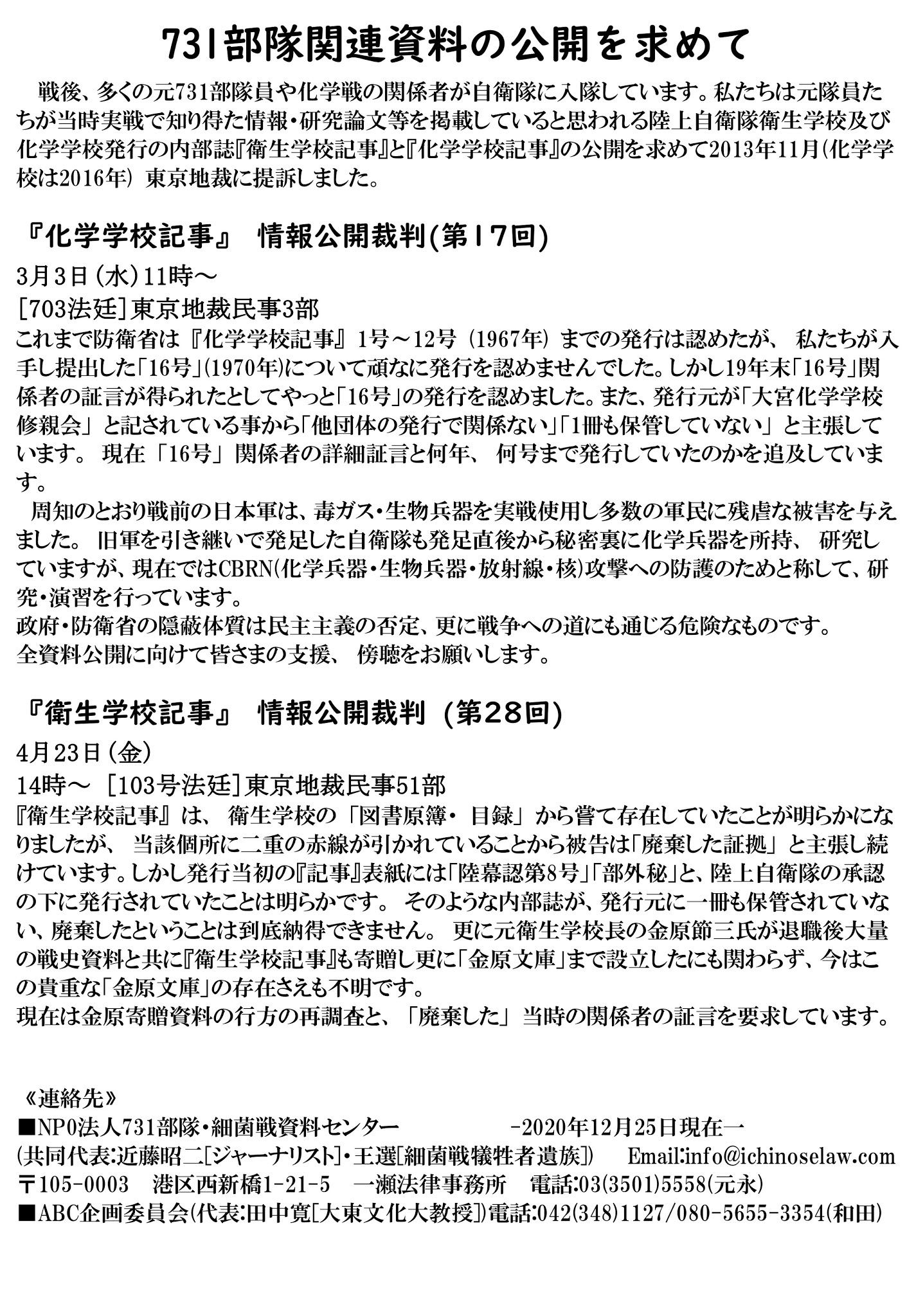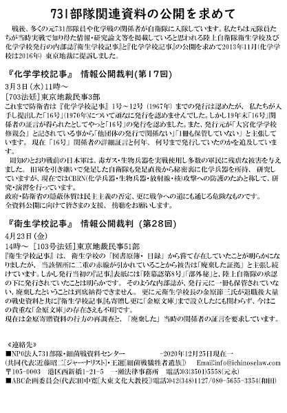 ●「衛生学校記事」情報公開裁判 4月23日(金)14:00~103号法廷