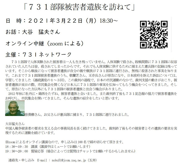 2020「731部隊 戦前・戦後の医学ー医学と人権を考える」3