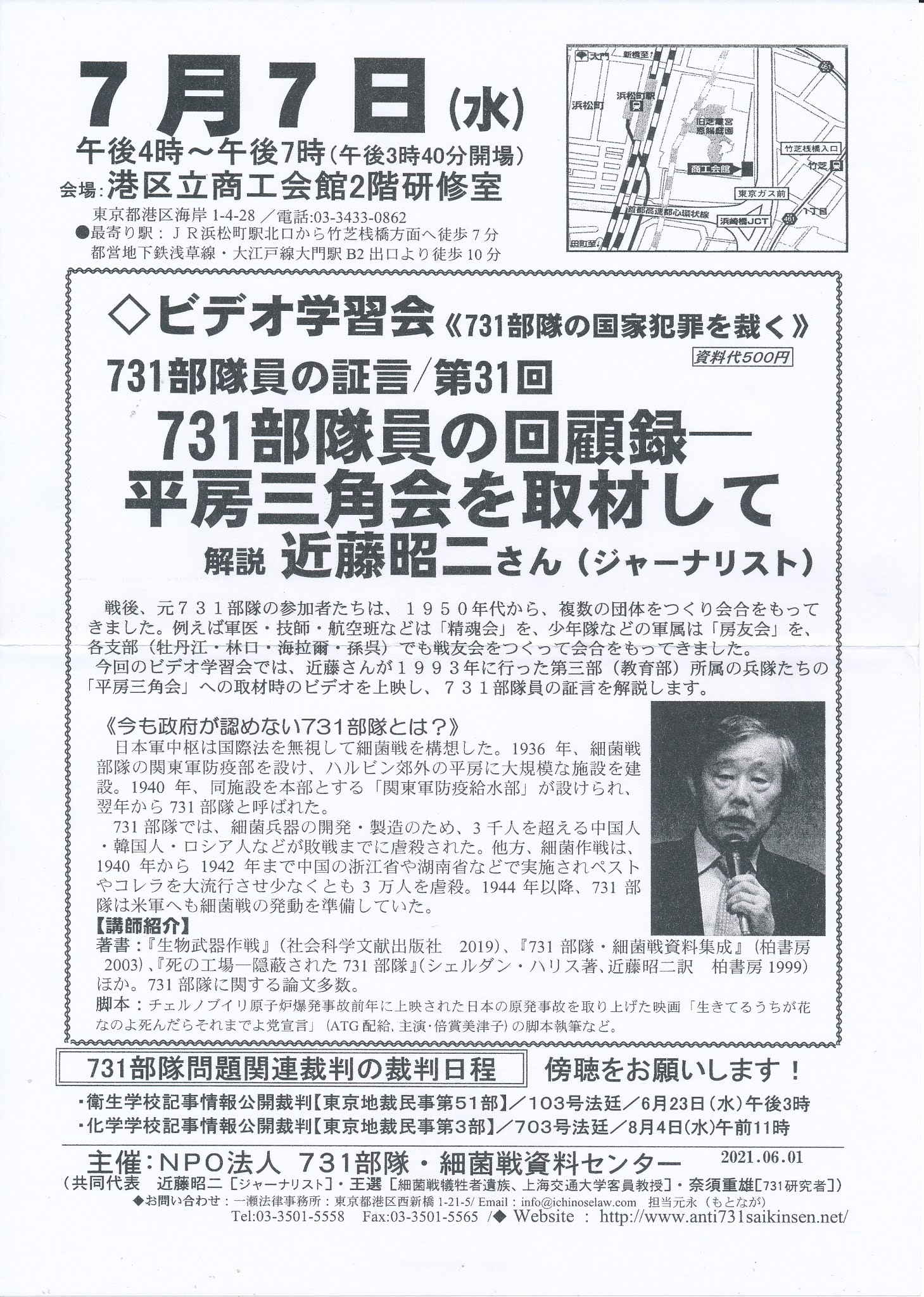 「化学学校記事」情報公開裁判 3月3日(水)11:00~703号法廷