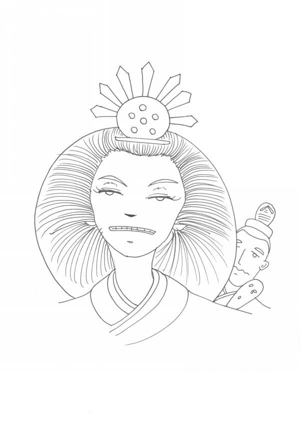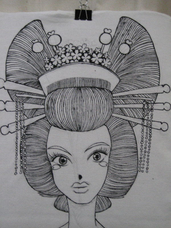 エンピツで下書きした時と、筆入れ後の唇の仕上がりが全然違う(笑)