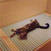 ★↑ 故・ラグさん。画像は、風呂フタの上でくつろいでいる様子。多分、床暖的なシステムだと思われます。