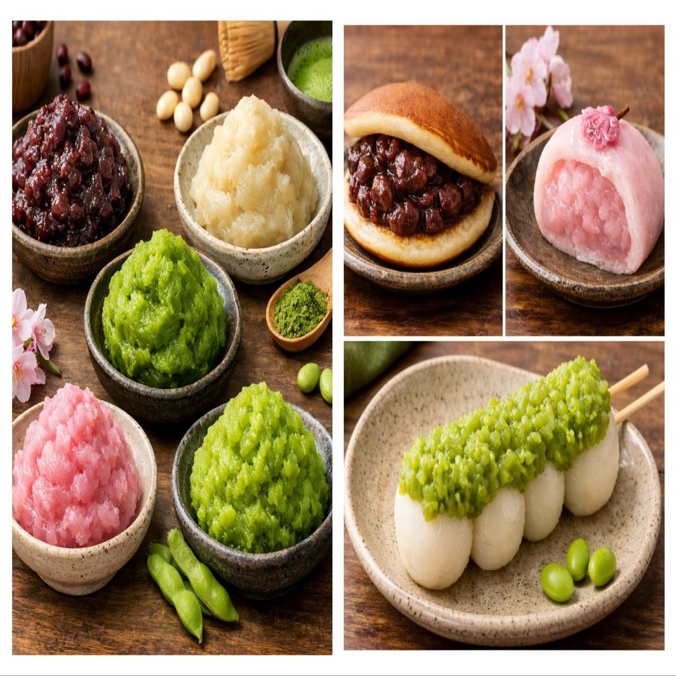 抹茶あん・ミルクあん・カスタードあん・チョコあん・芋あん・桜あん・うぐいすあん・ずんだあん…など
