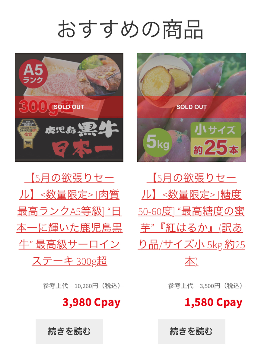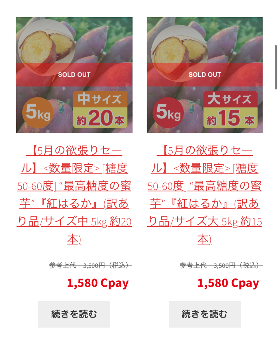・5月の欲張りセールとしてA5等級鹿児島『サーロインステーキ』、最高糖度の蜜芋『紅はるか』等々お得なモールです!!!