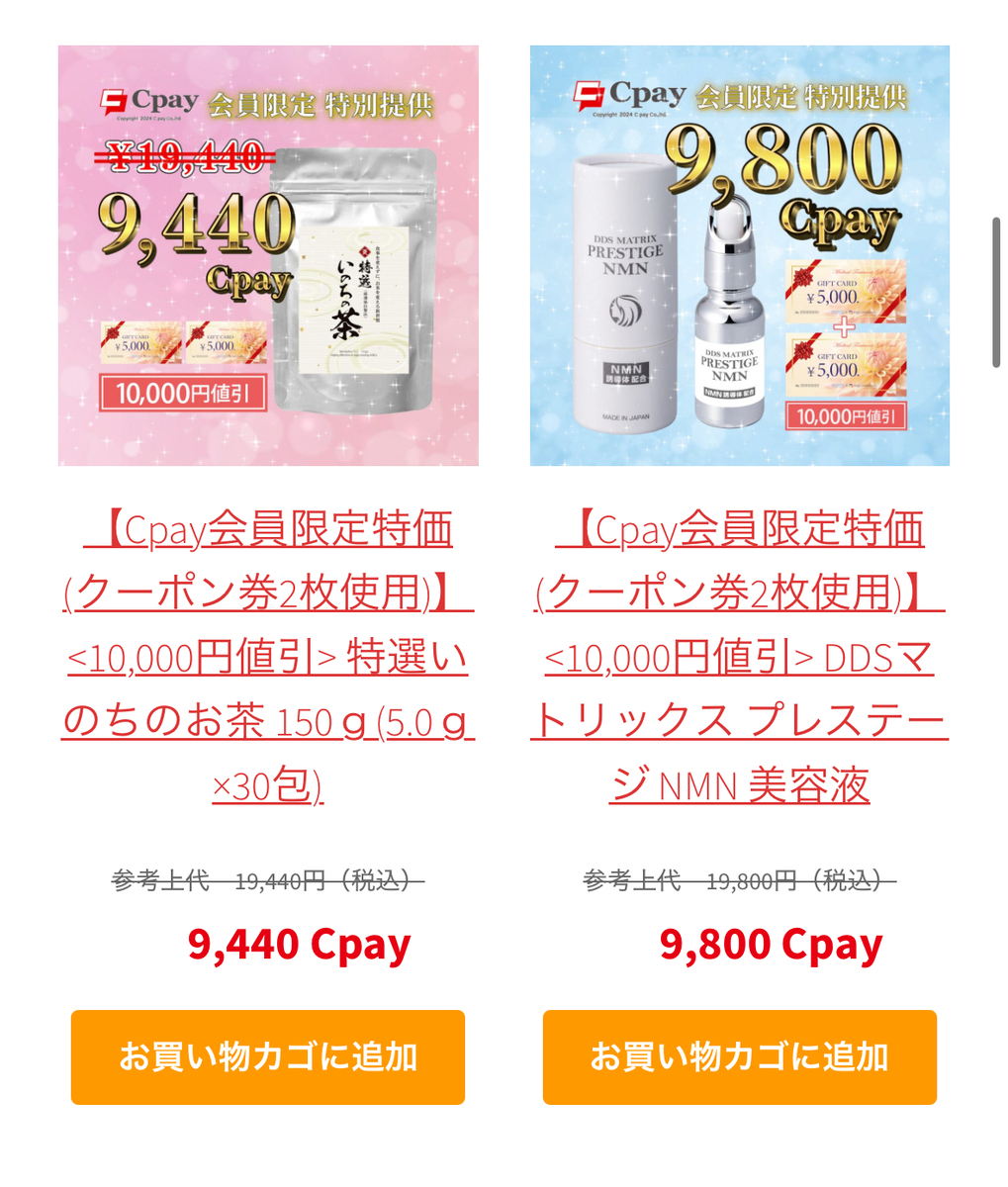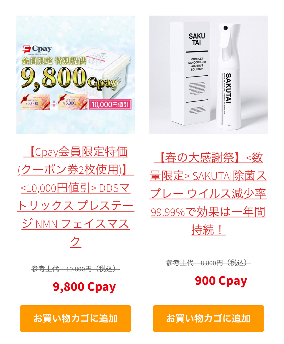 また独自のネットショッピングサイト「Cpayモール」を利用するためには必ずCpay登録をしてユーザーになる必要があります。