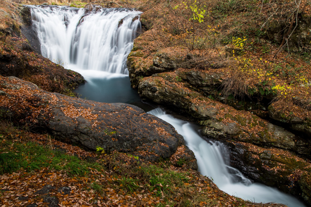 滝の上流は少し紅葉しています。