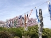 その東屋の目の前には、早速、桜と鯉のぼりがお出迎え。