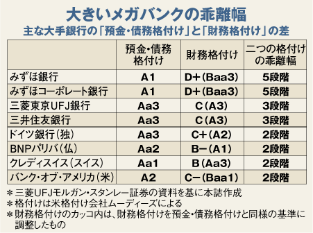 公的支援の期待がなくなると、その乖離幅だけ格下げされる危険があるとした。
