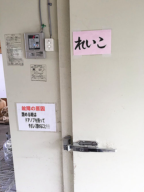 なんと、会社の扉や冷凍ショーケースなどに、名前を書いた貼り紙を設置!