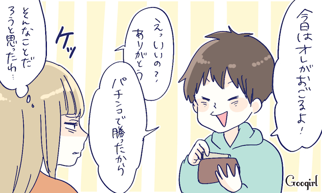 ▽ なんというダメダメフレーズなのでしょう! 言われたときの彼女さんの呆然とした表情が目に見えるようです。もしかしたら彼氏さんは冗談のつもりだったか、あなたがおごられることに気負いしないようにと言ったセリフかもしれません。