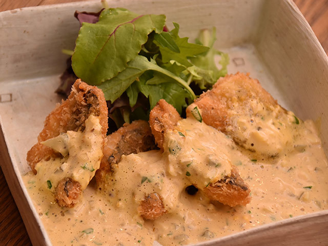 3種の酢を調合してさっぱりとした口当たりに仕上げられる特製タルタルソースもいい仕事ぶり。料理に使用するソースやドレッシングなども全て手作りするというのも高橋さんのこだわりのひとつ。