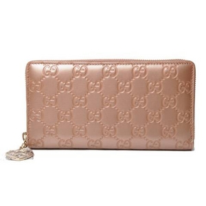 ○【現品限り】Gucci(グッチ) グッチシマ ラウンドファスナー長財布 メタリックピンク 282477 【未使用】