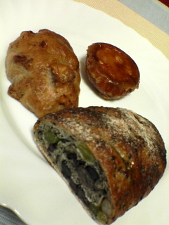 黒ゴマフランスパンに豆いっぱい(210円也・右下)