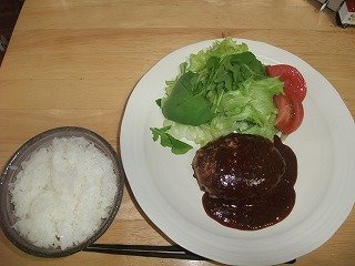 お昼ごはんはハンバーグをいただきました。自家製ミンチ&自家製ソースで、お肉の歯ごたえが違うような気がしました。美味です。