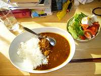 お昼ごはんはチキンカレーとサラダをいただきました。